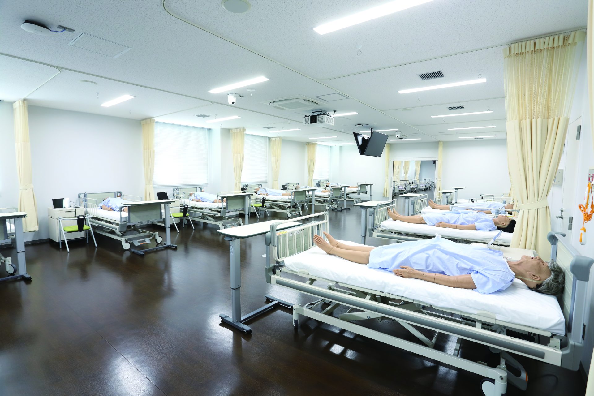 In the new Faculty of Nursing school building, we will set up not only a lecture room, but also a nursing training room and skill slab, introduce simulation education using a large number of high-performance simulators, and provide realistic nursing technical education with the participation of residents in the Shimonoseki area as simulated patients. In addition, a number of seminar rooms and training rooms have been set up to promote independent learning such as group work for students.