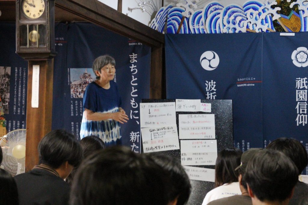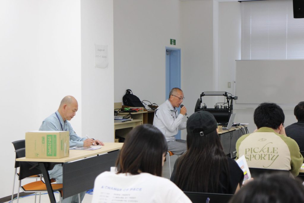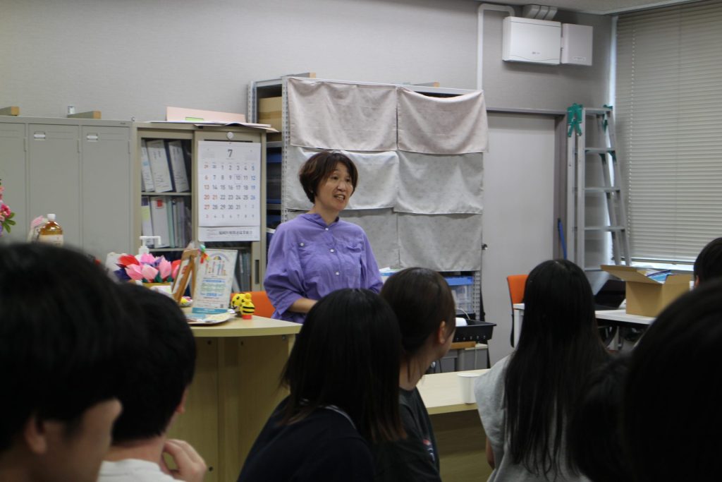 As a place to "connect" people involved in Fukutsu City, we visited Kikkake Lab, which is engaged in various activities as well as support for social movement groups, and gave lectures from Mr. Nakamura and Mr. Suzuki. The students talked about ideas to be able to participate as easily as possible and continue exchanges, and the students listened with interest.