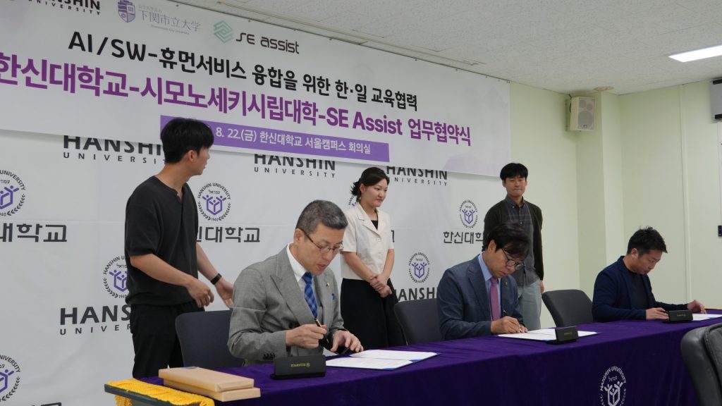On Friday, August 22, 2025 Shimonoseki City University (President: HAN Changwan ) signed an agreement with Hanshin University and SE Assist Co., Ltd. (Shimoseki City) on the Seoul campus of Hanshin University, Korea.