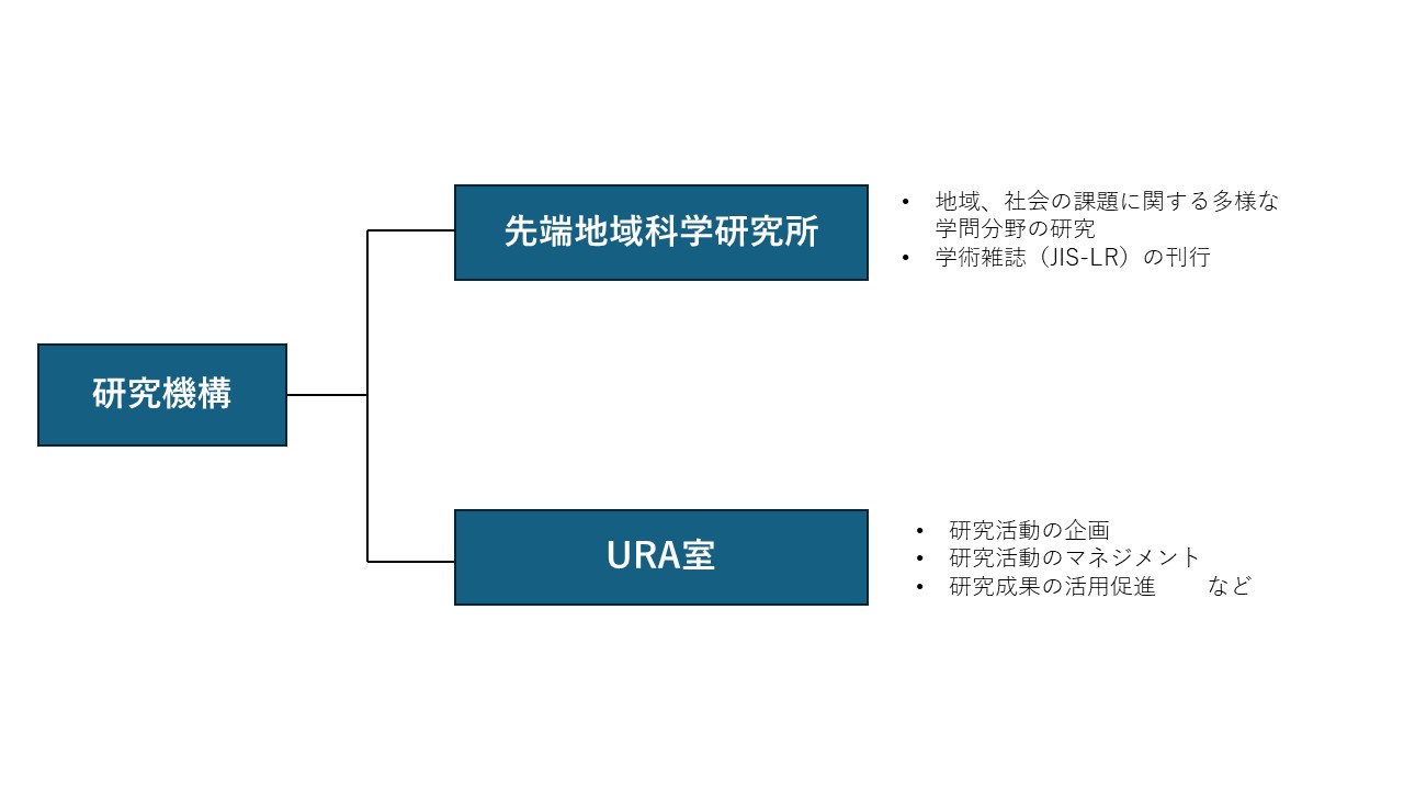 University Research Administration Office and Organization for Advanced Regional Research are installed in Research Organization.