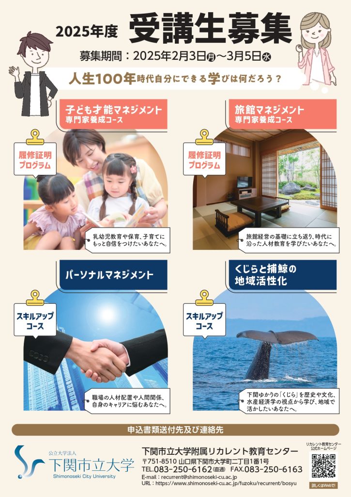 Home About Shimonoseki City University List of New Information SDGs Initiatives for SDGs SDGs Home Initiatives for SDGs SDGs Activity Contact Form Education [Recruitment of students] We are looking for a 2025 certification program and a skill improvement course. 2025.01.28 The Path of Global Career 2024 ~The Path of Seniors who have studied abroad and international experience as a student and have a message to their juniors~ 2025.01.28 3 / 3«123