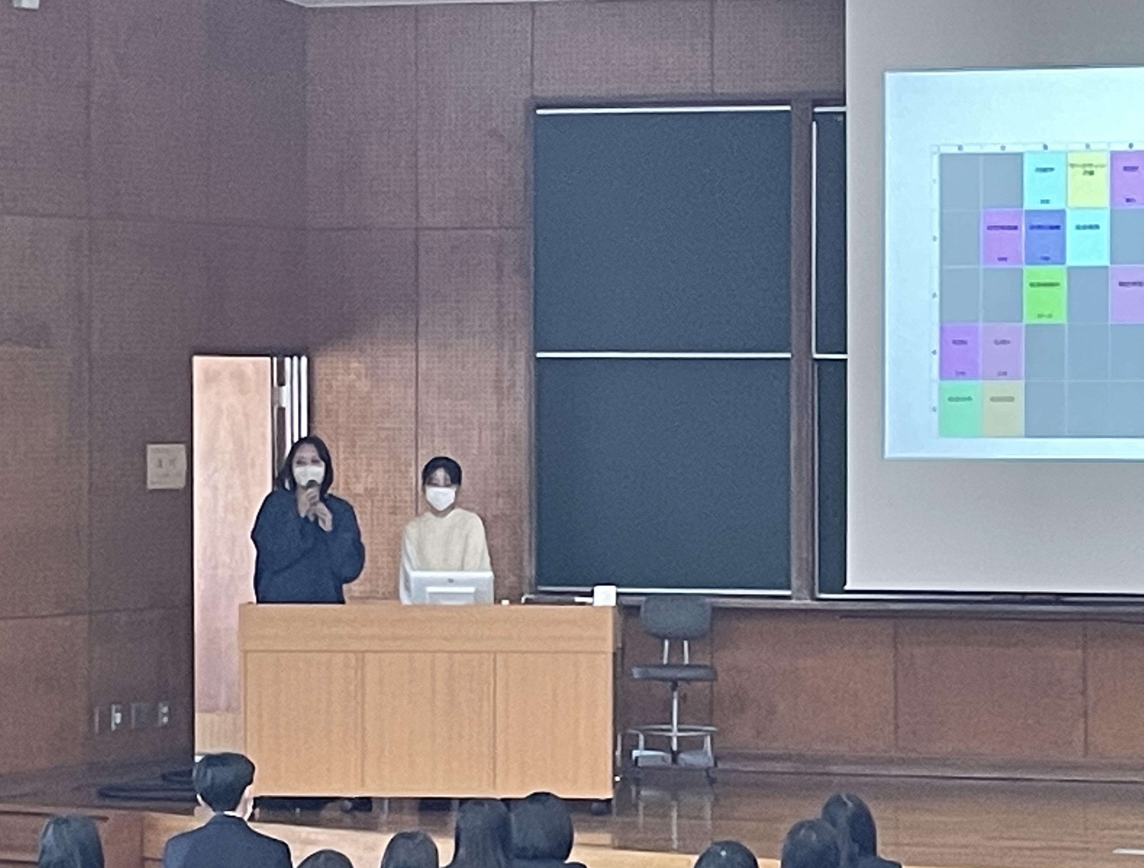 At the current status briefing session by graduates of Shimonoseki Secondary School and TUFS students, we were able to hear stories about the differences between junior high and university students, how to spend their daily lives unique to university students, and questions asked in advance about job hunting for university students.