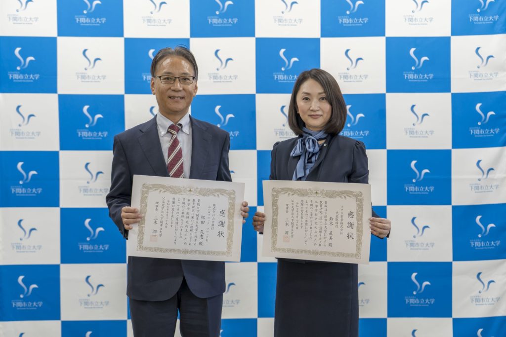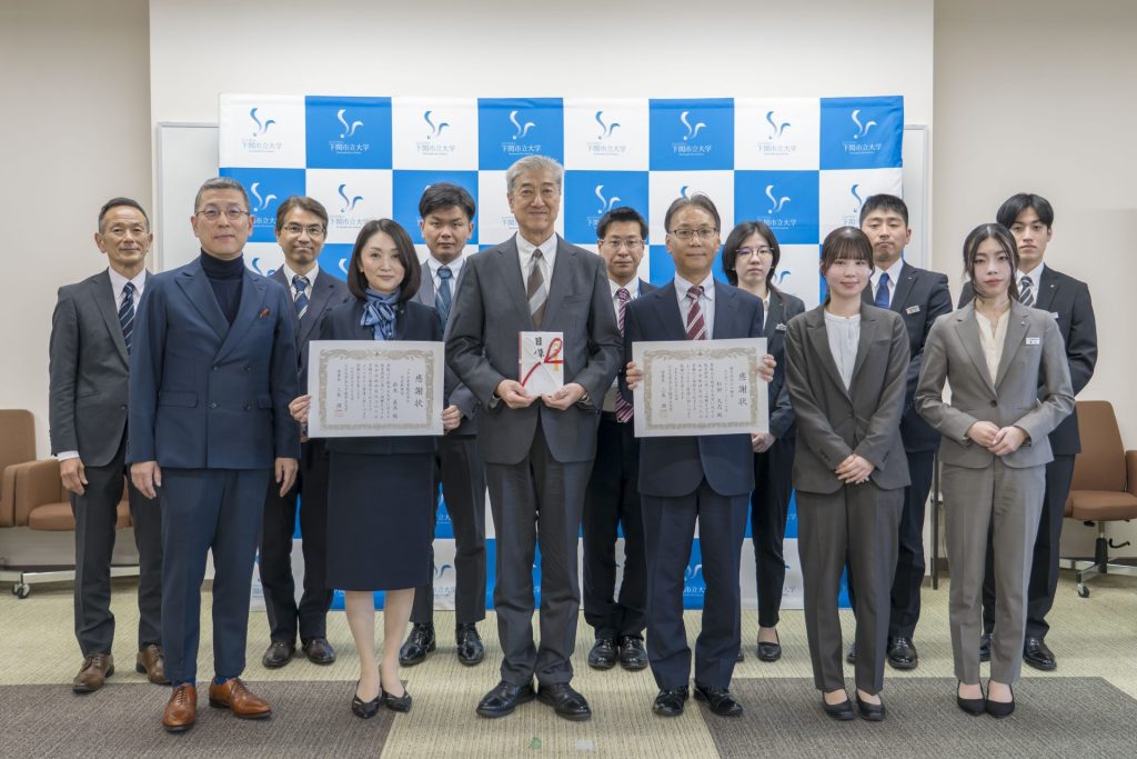 Utilizing the “donation-type time deposit” of Yamaguchi Bank, Ltd., Yutaka Dengyo Co., Ltd. (Takaramachi, Shimonoseki City) offered a donation to Shimonoseki City University, and on October 29 at Shimonoseki City University A donation ceremony and a letter of appreciation were held. (The donor will be Yamaguchi Bank, Ltd.)